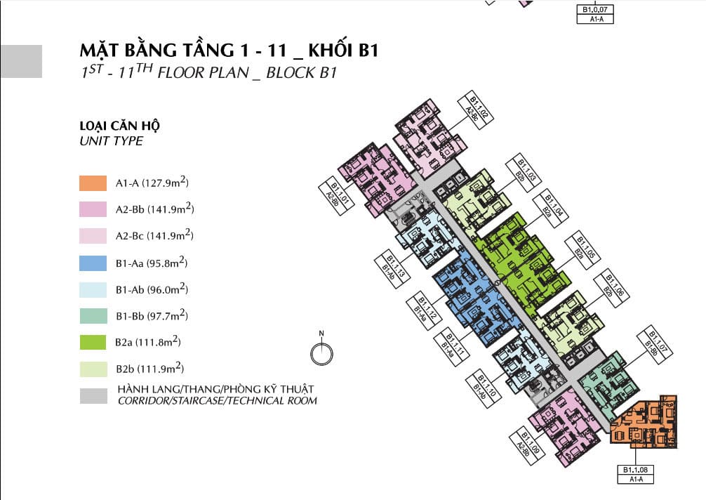 - Diện tích căn hộ: từ khoảng 96 m² đến 160 m² hoặc hơn (2 phòng ngủ – 3 phòng ngủ).
